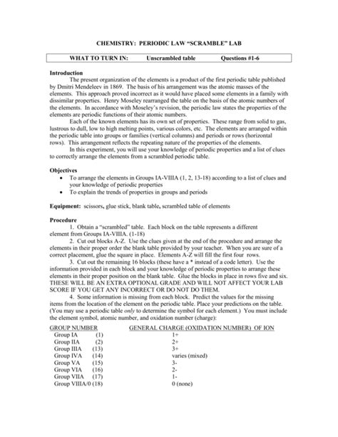 Read Online Chemistry Periodic Law Scramble Lab Answer PDF